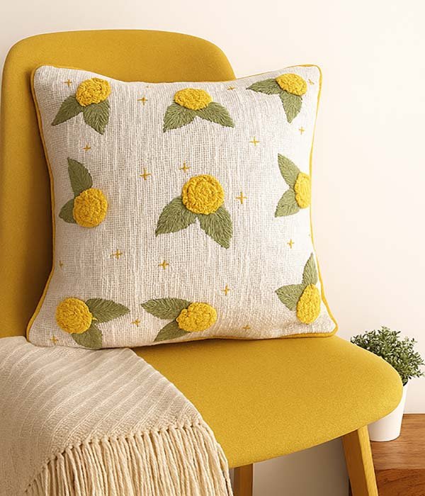 Add a touch of elegance and handcrafted charm to your living space with the Premium Yellow Floral Hand Embroidered Cotton Cushion Cover. Thoughtfully crafted using high-quality premium cotton fabric, this cushion cover features delicate hand embroidery that reflects fine craftsmanship and timeless artistry.